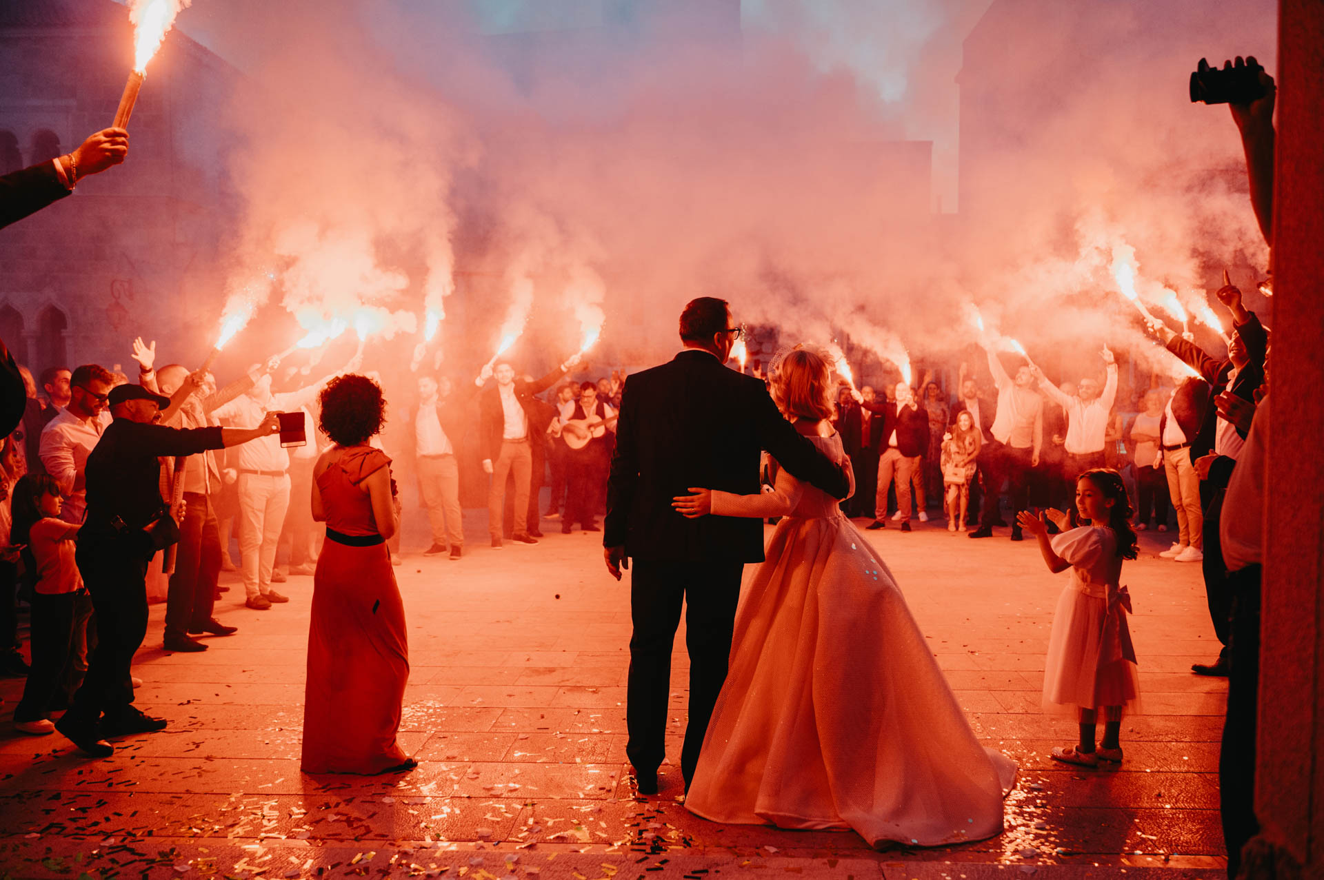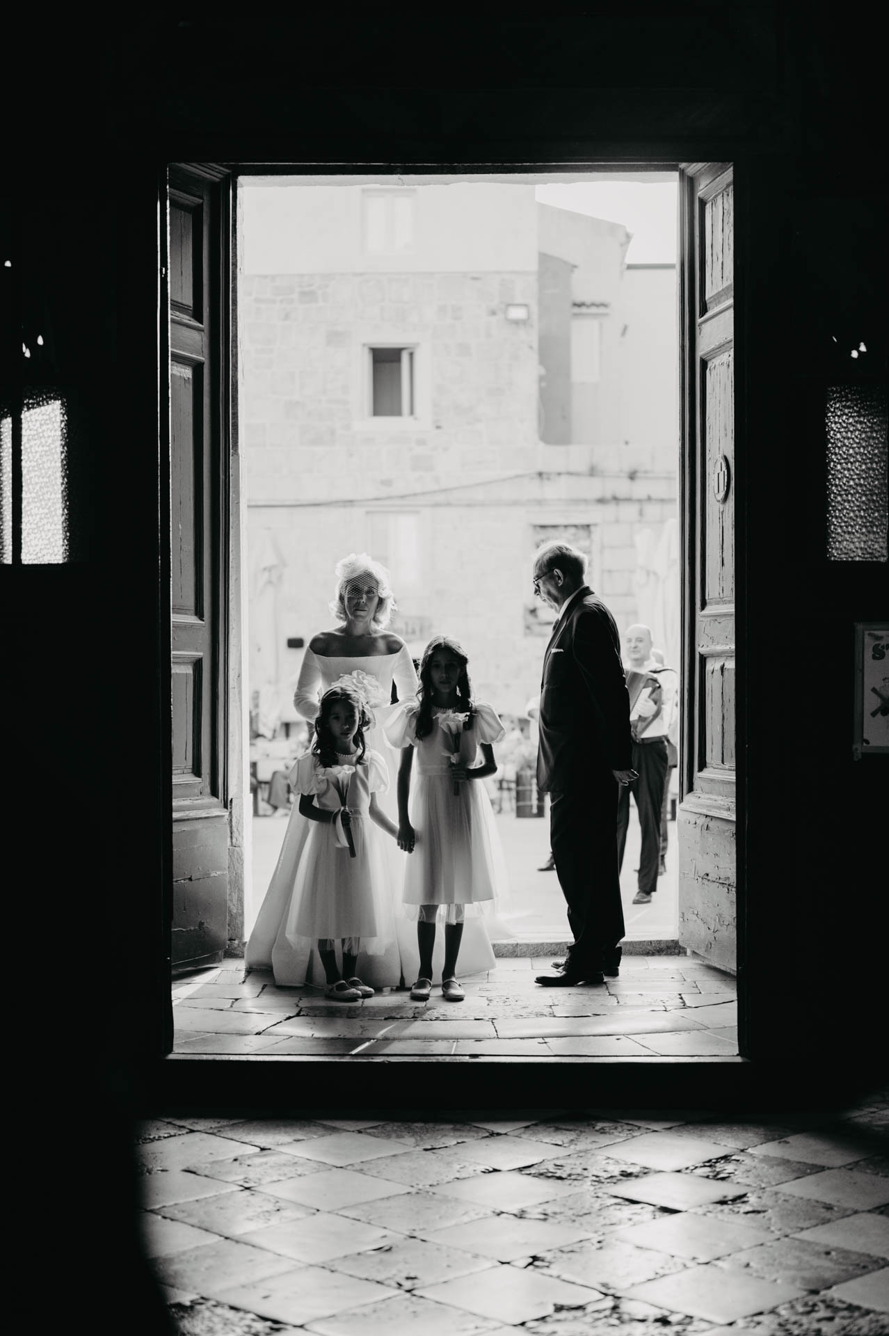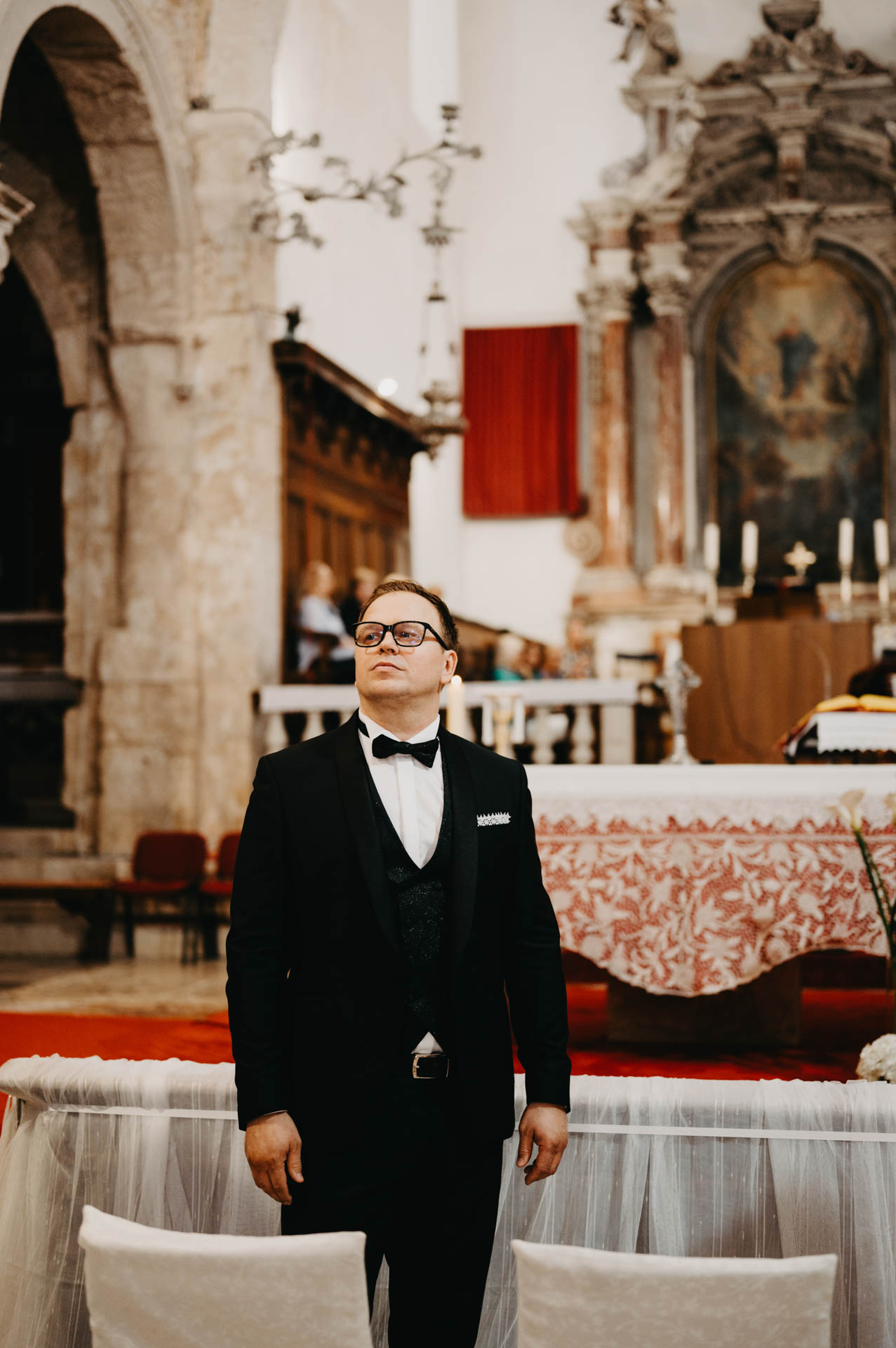After the wedding at the stunning St. Stošija Cathedral in Pag, known for its Romanesque architecture and history dating back to the 4th and 5th centuries, we had a photo session around the town. Pag, located on the eastern part of the island, is famous for its salt, lace tradition, and unique stone architecture. Its narrow streets, historic buildings, and coastal views make it the perfect backdrop for romantic photographs.